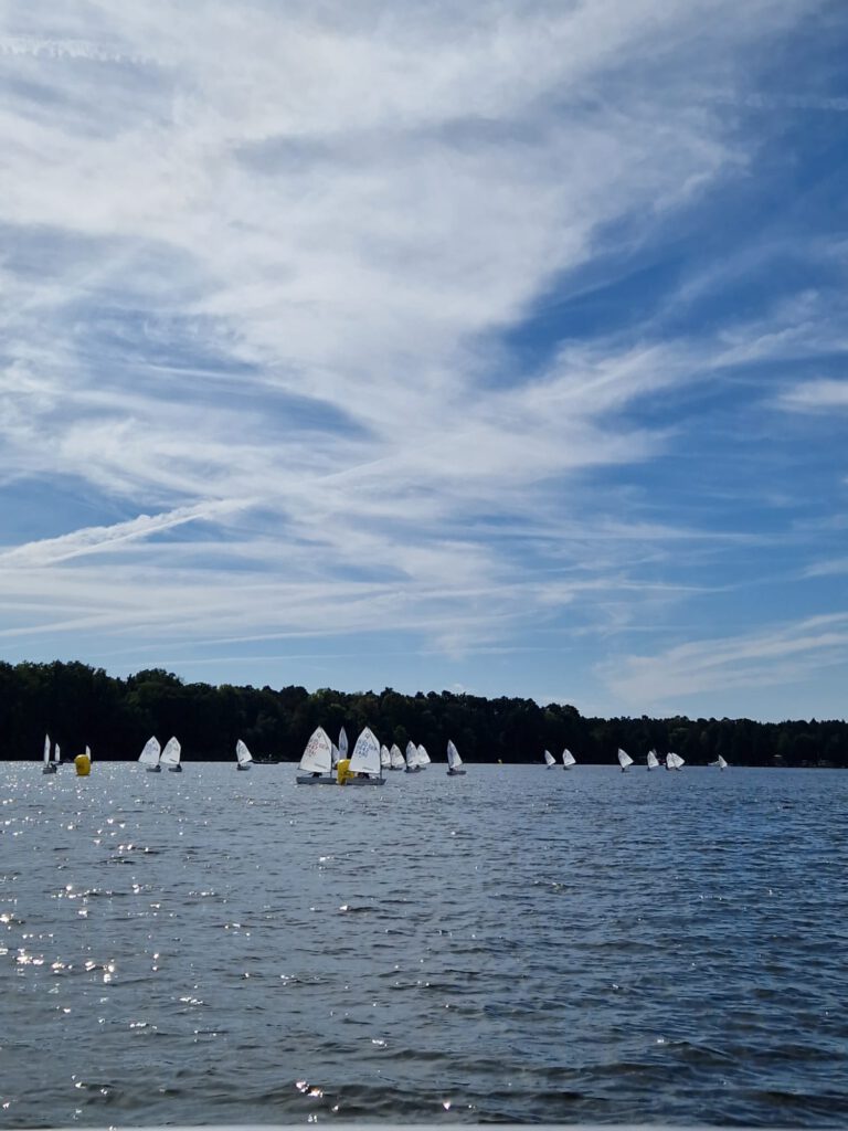 Am 20. und 21. September wurde auf dem Seddinsee die Kehrausregatta der Opti B durchgeführt. Es waren insgesamt 29 Boote am Start. Am Samstag konnten bei anfänglichem Warten auf Wind trotzdem noch die geplanten 4 Wettfahrten durchgeführt werden. Danach gab es für alle Nudeln und ein Kuchenbuffet. Sonntag gab es dann noch einmal 2 Wettfahrten.